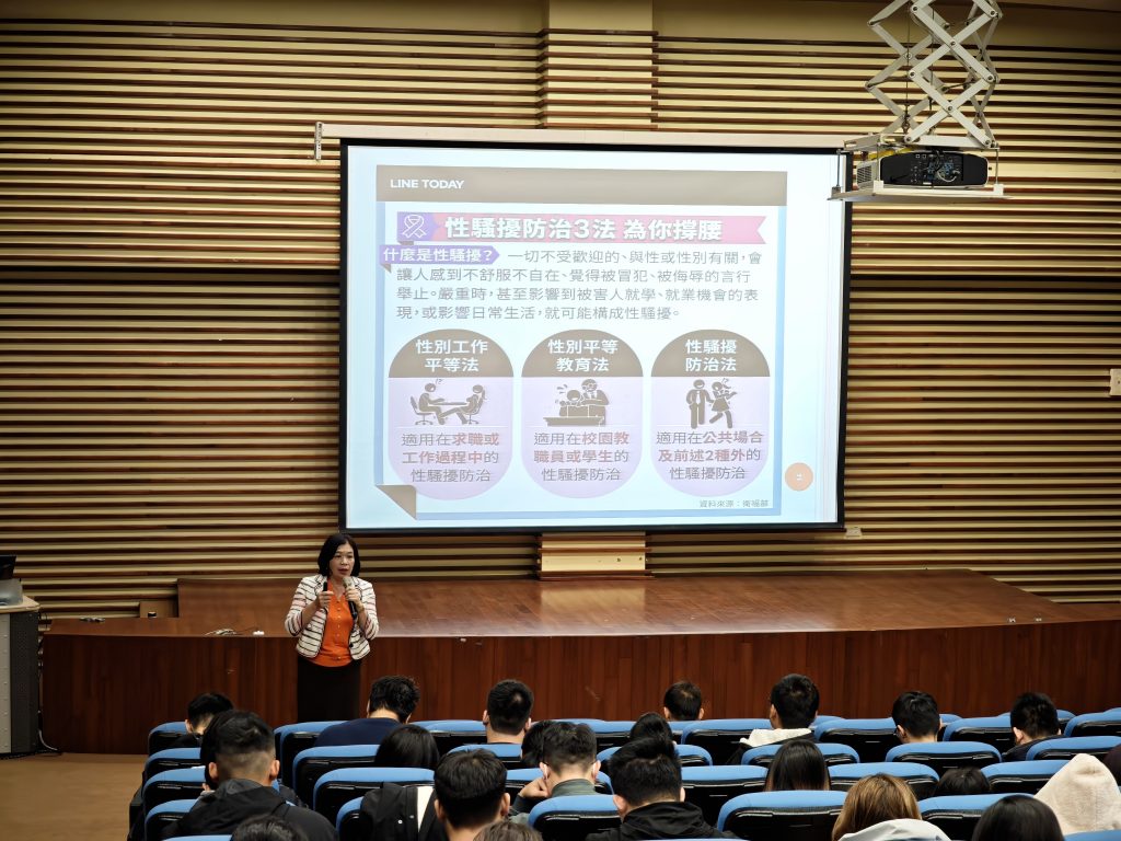 同時,講師亦加強說明職場性騷擾與職場霸凌防治議題,透過法律定義、適用範圍、實務案例分享,並說明舉證方式與求助管道,提升學生對職場不當行為的辨識能力與自我保護意識,協助學生在實習過程中能安心學習、保障自身權益。
