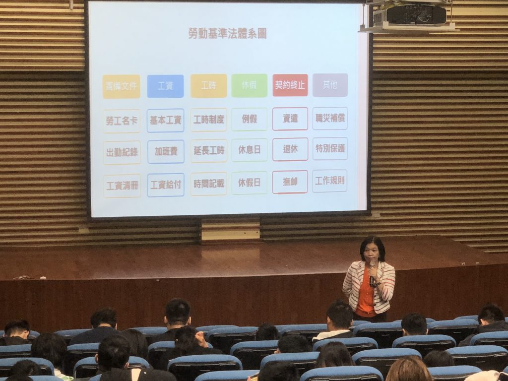 一、活動主旨:針對即將前往校外實習之實習生,瞭解自身勞動權益,藉由職前教育講座,提供實習生有正確的職前知識。